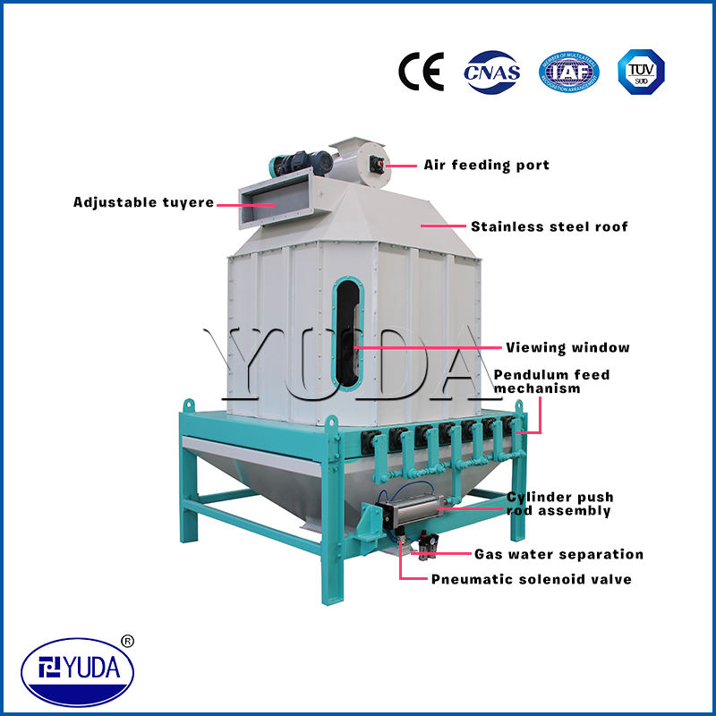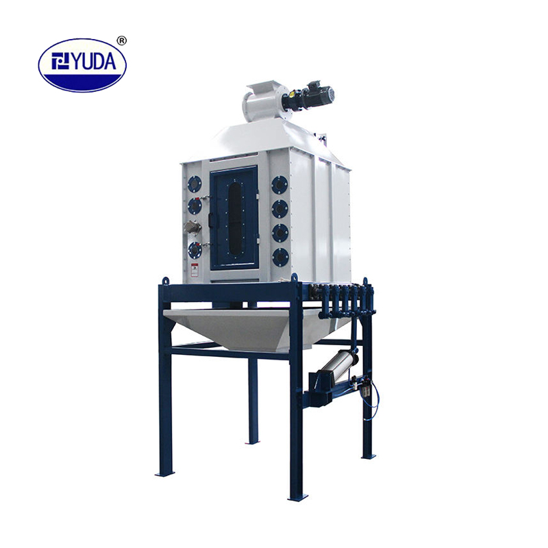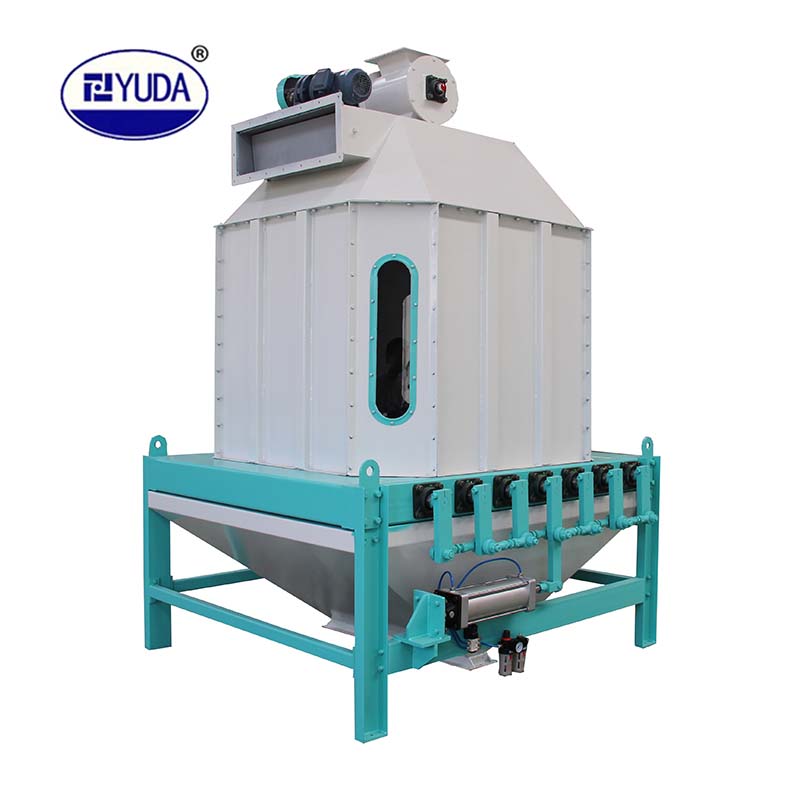 膨脹料的冷卻是膨脹工段中不可缺少的工序,擺式逆流冷卻器能將從膨脹器出來溫度達(dá)70°C~90℃的膨脹料冷卻到略高于室溫3℃~6°C,并能降低水份≥3%,這樣便于膨脹料的運輸、儲藏和保管,同時也適用于膨化工段和制粒工段中膨化料和顆粒料的冷卻。擺式逆流冷卻器型號不同,其產(chǎn)量亦不同;它可適應(yīng)各種規(guī)模飼料廠使用。